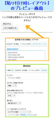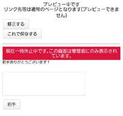 ALICE+サポート ユーザー助け合い掲示板 TOPページ ユーザー助け合い掲示板 拍手機能が機能しない 編集 キャンセル 削除 アク禁 アク禁解除 キャンセル 凍結 0 Anonymous K 検索をして探しましたが解決するものがなかったためスレッド失礼いたします。 拍手機能を作るのに苦戦しています。 私がしてる設定は以下のとおりです。 【基本設定】 ・ありがとう画面表示→順番 【画面固定】 ・する 【繰り返し】 ・繰り返さない 【ページ貼り付けリンクタイプ】 ・レイアウト指定 拍手管理画面では 【全体レイアウト】 ・#clap# 【貼り付け時レイアウト】 ・#formStart# ・#formInput_20# ・##formSubmit_拍手# ・#formEnd# にしているのですがプレイビューで出来てるか確認しても、プレイビュー中です。【修正する】【これで保存する】しか画面に出てこず設定したものが何一つ出てきません。 理想は大きなメッセージ欄に小さい?送信ボタンを作りたいのですが、どのようにしたら理想通りの拍手機能になりますか? 1 01/15 01:28 返信 コメント投稿 検索 3 Anonymous K >>2 <font size="3" color="#000000"> 〜メッセージ〜</font> というふうにしたら、文字の大きさの方も無事に解決できました! 拍手機能の設定のやり方に詳しく助言をいただきありがとうございました! 本当に助かりました! 01/23 06:23 返信 2 Anonymous K >>1 返信が遅くなってしまい申し訳ありません! 詳しく教えてくださりありがとう御座います!すべてが手探りで意味もなんとなくで把握していじっていたので、今回詳しくしれて助かりました! 無事に望む形にも出来ました!! あともう一つだけお聞きしたいのですが、この『拍手ありがとうございます』の文字の大きさはどこで変更できますか?質問ばかりですみません。 1 01/21 23:22 返信 1 しち SOG10 >>0 プレビュー画面に何も表示されない という話の『プレビュー画面』は、【貼り付け時レイアウト】編集にあるプレビューボタンを押したときに出てくる画面のことですね?(添付画像) もしそうでしたら、まずは拍手フォームが望んだ形になっているかの確認のために、以下を行ってみてください。 >1️⃣【基本設定】の〔繰り返し〕設定を、 > 『永久に繰り返す』 に変更してください。 >2️⃣ そのうえで【貼り付け時レイアウト】の『保存しないでプレビュー』を押下 フォームタグが正しく設置されていれば、これで拍手のコメント入力エリア・送信ボタンが表示されるはずです。 *🟩 メッセージ欄を2行以上の大きさにしたい場合 今お使いの独自タグ『#formInput_20#』で表示されるのは、1行の入力欄です。 (コメントの改行不可。幅は変更できるがテキストの表示は1行より増やせない) コメントの改行ができて2行以上の大きさになる入力欄を設置したい場合は、 『#formInput_20#』の独自タグを #formTextarea# に変えてみてください。“テキストエリア”という、大きな入力欄になります。 >3️⃣ フォームが意図通りプレビューできていたら、【基本設定】を『繰り返さない』に戻してOK >4️⃣ 拍手フォームを貼り付けたい場所(トップページや子ページなど)へ、『貼り付け用独自タグ』を設置 拍手機能編集画面トップの下部にある『##clap数字(リンク文字)##』というタグの『(リンク文字)』部分を除いて、 ##clap数字## という形で設置してください。 (※「数字」は元のタグにある数字のままで。初めて作った拍手ならたぶん「1」です) こうすることで【貼り付け時レイアウト】で設定した拍手フォームが、任意の場所へ表示できます。 なお『##clap数字(リンク文字)##』のままで設置すると、拍手は【貼り付け時レイアウト】を無視してテキストリンクの形で表示されます。 *** 補足 *** *❓️ そもそもなんでプレビューにフォームが表示されなかったか? #🅰️ 繰り返し設定が『繰り返さない』になっていると、特定の条件下で独自タグ使用のフォームが表示されなくなるから。 (独自タグ=「#formStart#」や「#msg_拍手#」などの『#○○#』タグ) なので、「独自タグのフォームが表示されない!」というときはとりあえず、繰り返し設定を一旦『永久に繰り返す』にしてみてください。 《 『繰り返さない』で独自タグフォームが表示されなくなる条件 》 >🟦『ありがとう画面』が1つしかない場合、 🔹【貼り付け時レイアウト】のプレビュー画面 🔹『ありがとう画面』のプレビュー画面および本番画面 で表示されなくなります。 *※『繰り返さない』になっていても、トップページや子ページ等に実際『##clap数字##』を設置した際は【貼り付け時レイアウト】のフォームがちゃんと表示されます。 >🟦『ありがとう画面』が複数ある場合、 🔹“最後に表示される『ありがとう画面』”の本番画面 で表示されなくなります。 *※『ありがとう画面』のプレビュー画面においては表示されます。 *※【貼り付け時レイアウト】のプレビュー画面でも表示されます。 なんでかというと、仕様です。 ●拍手フォームの送信ボタンを押したら『ありがとう画面』へ遷移する ↓つまり ●『繰り返