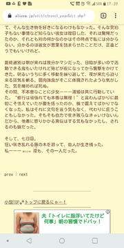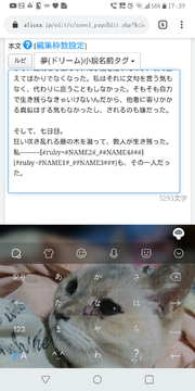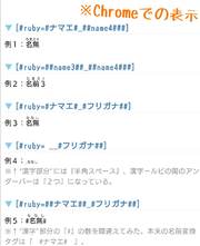 ALICE+サポート ユーザー助け合い掲示板 TOPページ ユーザー助け合い掲示板 夢小説の名前変換にルビ 編集 キャンセル 削除 アク禁 アク禁解除 キャンセル 凍結 0 IKU L-03K 名前変換タグを使ってルビを振るも 何故かワンセットがうまく行きません。何故… 分かる方教えてください [#ruby=##NAME2##_##NAME4###] ↓ 変換すると 漢字にあたる##NAME2##が表示されず、ルビにあたる##NAME4##が小さく出る感じです 1 04/10 00:11 返信 コメント投稿 検索 3 しち SOV40 >>2 やっぱり画像を見た感じだと、『##NAME2##(または#NAME2#)』に文字がセットされてない、または非表示になっているように見えるんですよね……。 添付画像の例4がほぼ同じ状態を再現できていると思います。 これはルビタグの“漢字部分”を空白文字(例では半角スペース )にして、なおかつ本来1つだけのアンダーバーを2つに増量するミスをあえて犯してみたものです。 もっとも、>>2の画像1・2枚目を見る限りではアンダーバーの書き間違いはなさそうですが……。 >ちなみにこの3枚目の画像は、1・2枚目どちらの編集内容を反映した結果の表示ですか? (画像1・2枚目で問題の“漢字部分”にあたる名前変換タグが『##NAME2##』『#NAME2#』の2種類あるのは、設定をいろいろ変えてみているときの様子ですよね?) “漢字部分”が空白なのは予想通りなんですが、ルビの前になぜアンダーバーが入るのかは、画像を見る限りかなり謎なので……。 >いろいろ設定を変えても、『ルビの前にはアンダーバーが入る』状態ですか? それと“漢字部分”が表示されない問題に関しては……、以下のことをご確認ください。 >●##NAME2##(#NAME2#)には、どんな漢字を当てていますか?(>>2の3枚目では本来なんという字を表示するつもりで設定していますか?) *━━━━━━━━━━━━━━━━━━* * ##NAME2## →『表示したい文字』 *━━━━━━━━━━━━━━━━━━* >●名前変換前(デフォルト名)・名前変換後、どちらの状態でもルビタグが上手くいきませんか?(どちらでも>>2の3枚目と同じ状態ですか?) >●かつ、名前変換前(デフォルト名)・名前変換後はそれぞれなんという字を設定していましたか? >●##NAME2##(#NAME2#)は、ルビタグ以外の場所だと問題なくナマエが表示されていますか? “漢字部分”にあたる名前変換タグが『#NAME2#』という感じのむき出し表示になっていない以上、名前変換自体はされているはずなんですよね……。 “漢字部分”が環境依存文字なんじゃないかと、思いつく環境依存文字を入れてみましたが、自分の編集・閲覧環境だと問題なく漢字もルビも表示されました。(ちなみに環境依存文字は『鎺(はばき)』で試しました) とはいえ色んな字を試したわけじゃないので、何か表示できない文字を“漢字部分”に設定しているのでは? という可能性も捨てきれないかと。 “ルビ部分”も、ルビサイズになって表示されているので、ルビタグは働いているようですし……。(思いつく限りのミス例を試しましたが、タグをミスるとそもそもルビに変換されず、ルビタグむき出し表示になりました) あとは……、設定している“漢字部分”とALICE+独自ルビタグの相性が悪い(?)と仮定して、 #試しにALICE+独自ルビタグではなく、HTMLルビタグを使ってみてください。 <ruby><rb>漢字</rb><rp>(</rp><rt>ルビ</rt><rp>)</rp></ruby> * または、 <ruby>漢字<rp>(</rp><rt>ルビ</rt><rp>)</rp></ruby> 2種類とも、若干書き方は異なりますが同じ意味・同じ表示になるはずのタグです。 上段がALICE+ルビタグで使われるHTMLですが、下段のHTMLでも問題はありません。 ※なお、カッコ()は必要なので消さないでください。 これでも漢字部分が出ないなら、やっぱり設定されているナマエに何か問題があるとしか……。 なお先述の環境依存文字(機種依存文字)というのが気になる場合は、『機種依存文字チェッカー( https://www.submit.ne.jp/tools/check )』などを使ってみてください。 このチェッカーに引っかかる文字は、ガラケーなど一部の環境では表示されなかったり文字化けしたりします。 多分IKUさんはスマホで編集されているようなので大丈夫だとは思うのですが、編集環境の問題でナマエが文字化け・非表示に→問題のような状態に、というのもあり得なくはないかと……。 ちなみに私はAndroid10端末使用で、Firefoxにて小説を編集、FirefoxとChromeにて実際の小説画面を閲覧して確認しています。 04/12 13:12 返信 2 IKU L-03K お答えありがとうございます。 一応、設定を何度も確認したり設定名前タグを変えてみたりとあれこれやって見ましたがやっぱり画像の通りになってしまいます…どこか違うのか分からない…( ;꒳; ) 1 04/11 18:00 返信 1 しち Firefox >>0 > 漢字にあたる##NAME2##が表示されず 『本来漢字(##NAME2##)が出るはずのところが空白で、』 > ルビにあたる##NAME4##が小さく出る感じです 『空白の上にルビ(##NAME4##)だけ出ている』という感じですか? もしそうなら、ルビタグの不具合や仕様といったことではなくて、『##NAME2## にナマエがセットされていない(または“空