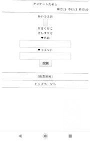 ALICE+サポート ユーザー助け合い掲示板 TOPページ ユーザー助け合い掲示板 アンケートの表示について 編集 キャンセル 削除 アク禁 アク禁解除 キャンセル 凍結 0 匿名 SO-01K アンケートを作ったのですが、以下の問題が起こっています。 1、チェックするボタンがでない 2、ボタンの配置がおかしい 3、一つのアンケートで2つの質問を置けるのか 現状は上部編集ボックスに質問を書いて居ますが、理想は 質問A □あ □い □う 質問B □あ □い □う としたいと思っています。 写真は上から セレクト、ラジオ、チェックボタンで項目を作成しております。 head、css、共に何もいじっていません。 調べたのですが答えが見つからずにとても困ってます。 分かる方居ましたら回答お願い致します。 08/06 22:46 返信 コメント投稿 検索 1 匿名 SO-01K そもそも使い方を分かってなかったみたいです。 解決しました。 08/06 22:52 返信 1ページ中1ページ目 4585 view 残り書き込み 9999 件 人気スレ 中央寄せができません 2023年09月15日 14時44分 14 拍手のお礼について 2021年10月31日 11時05分 11 ブログ村について教えて下さい 2022年10月01日 09時18分 6 ルビなどのタグ内にfont-familyが効かない 2023年09月19日 13時13分 6 関連スレ アンケートの投票結果について 2023年09月01日 20時37分 2 ユーザー助け合い掲示板 アンケートについて 2021年08月19日 00時45分 1 ユーザー助け合い掲示板 アンケートの投票結果について 2021年06月17日 01時26分 0 ユーザー助け合い掲示板 アンケートの投票ボタン 2020年12月27日 23時20分 4 タグ・デザイン掲示板 アンケート作成 2020年09月08日 07時35分 4 ユーザー助け合い掲示板 掲示板TOPへ サイトTOPへ ALICE+サポート